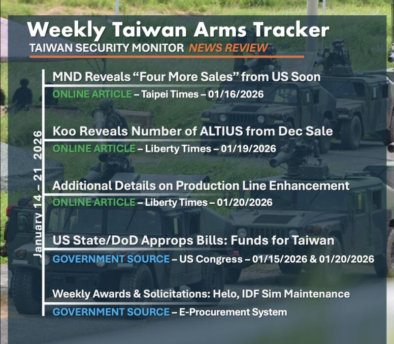Taiwan Security Monitor (TSM) is a student-driven research initiative based at George Mason University’s Schar School of Policy and Government. TSM provides open-source analysis, data visualizations, and policy-relevant insights on Taiwan’s security environment and cross-Strait dynamics.