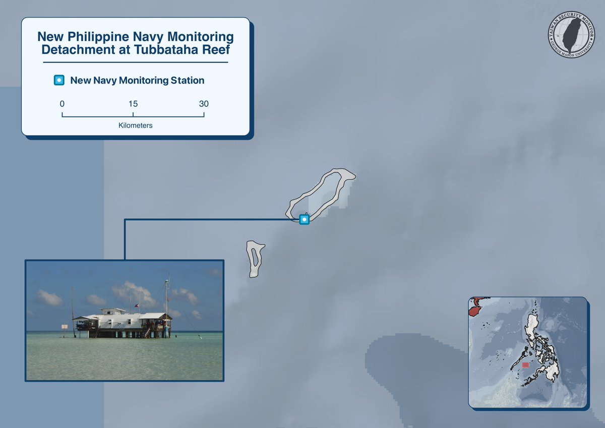 The Philippine Navy’s Western Naval Command will stand up a Naval Monitoring Detachment at Tubbataha Reefs Natural Park, with the stated goal of improving patrol, surveillance, and rapid-response coverage of Chinese naval activity in the Sulu Sea, while also supporting the reef’s protection against illegal activity. Above is our visualization of the detachment’s proposed location: