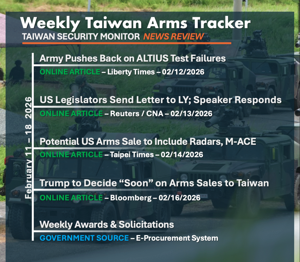 This week: the Army pushes back on reports that testing of new ALTIUS drones was not effective; a bipartisan US letter is sent to Taiwanese legislators worried about defense spending; reports show that a potential US arms sale could include radars and counter-drone systems alongside PAC-3 missiles, and Trump announces that he will make a decision “pretty soon” on additional sales to Taiwan,